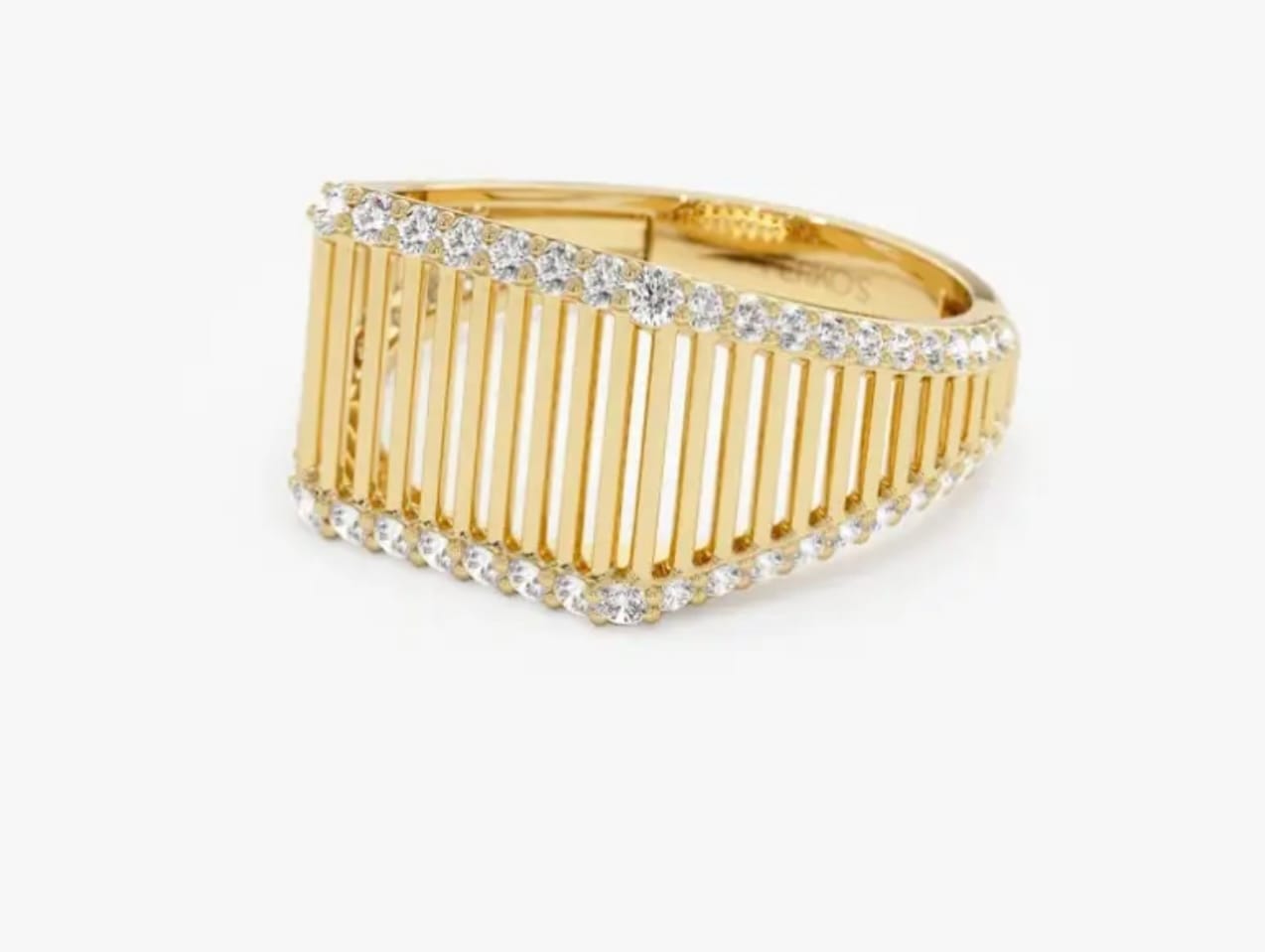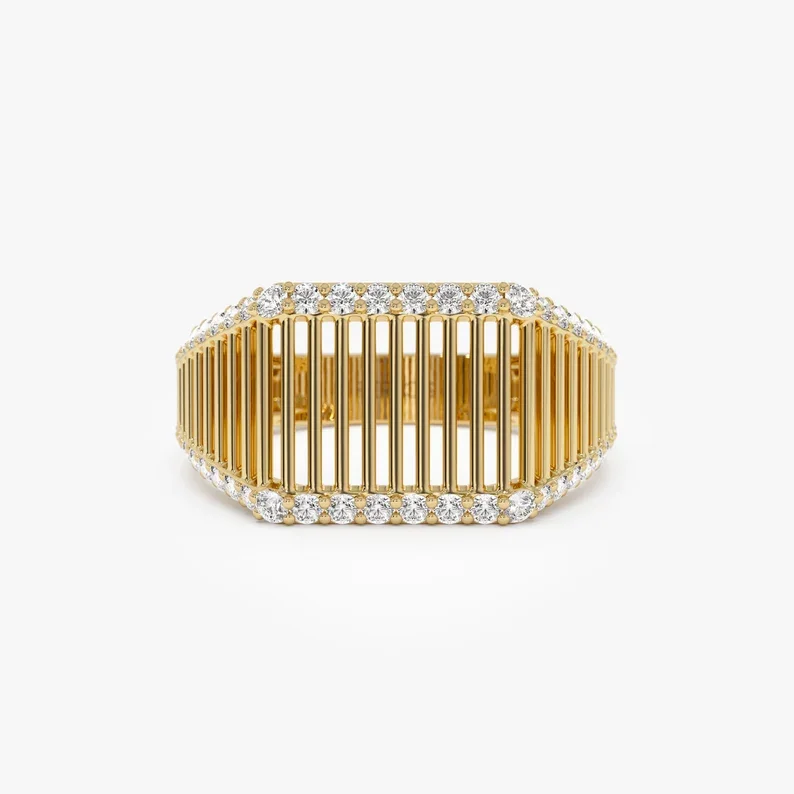 Cette bague au design moderne séduit par son allure graphique et raffinée.