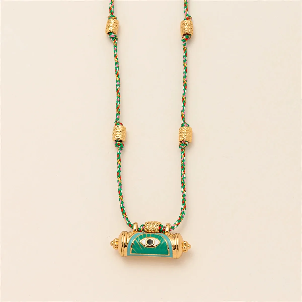 - Un bijou symbolique aux couleurs vibrantes, monté sur un cordon tressé. Élégant, porte-bonheur et intemporel.
