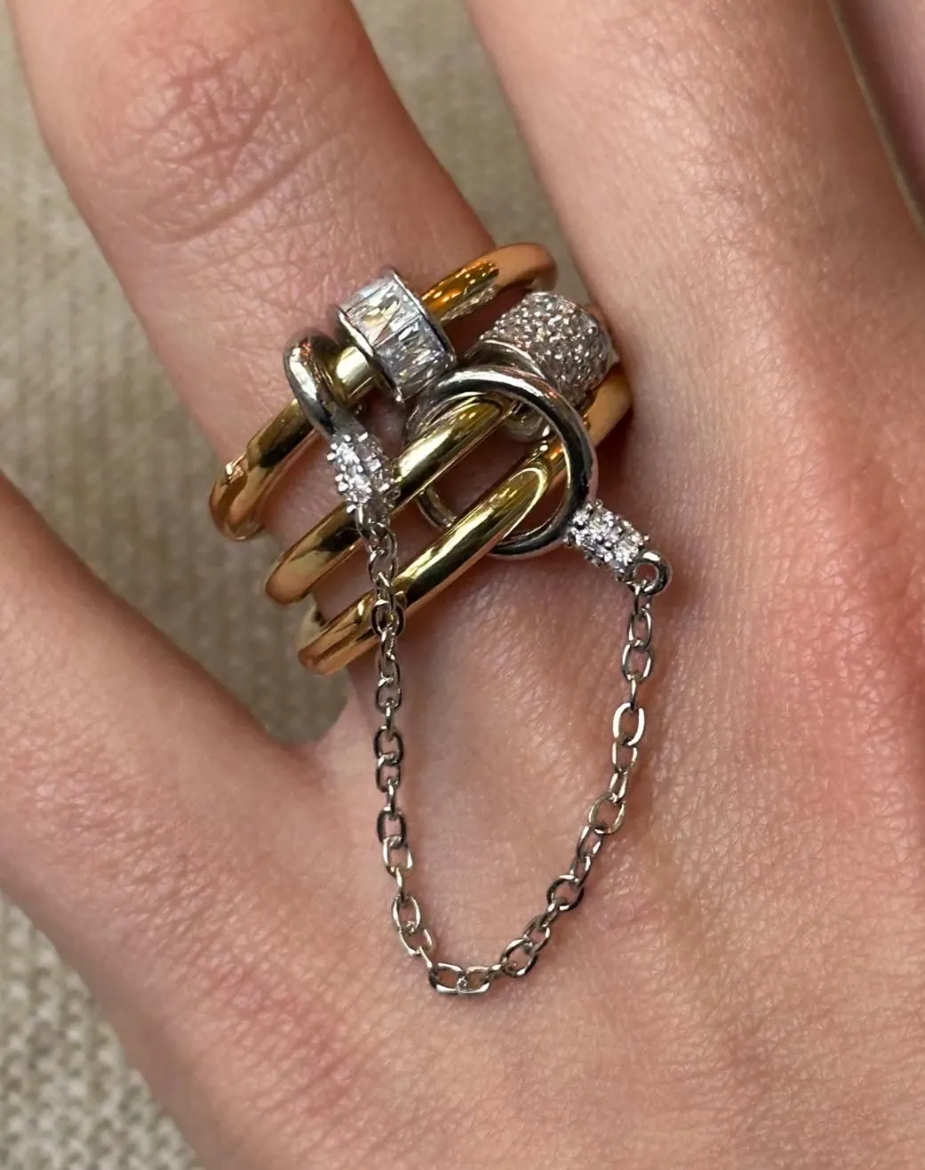 Bague triple avec chaîne